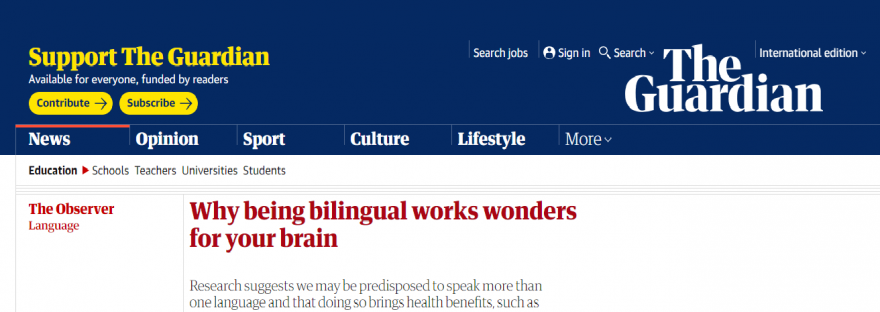 Статья в The Guardian о преимуществах изучения иностранного языка