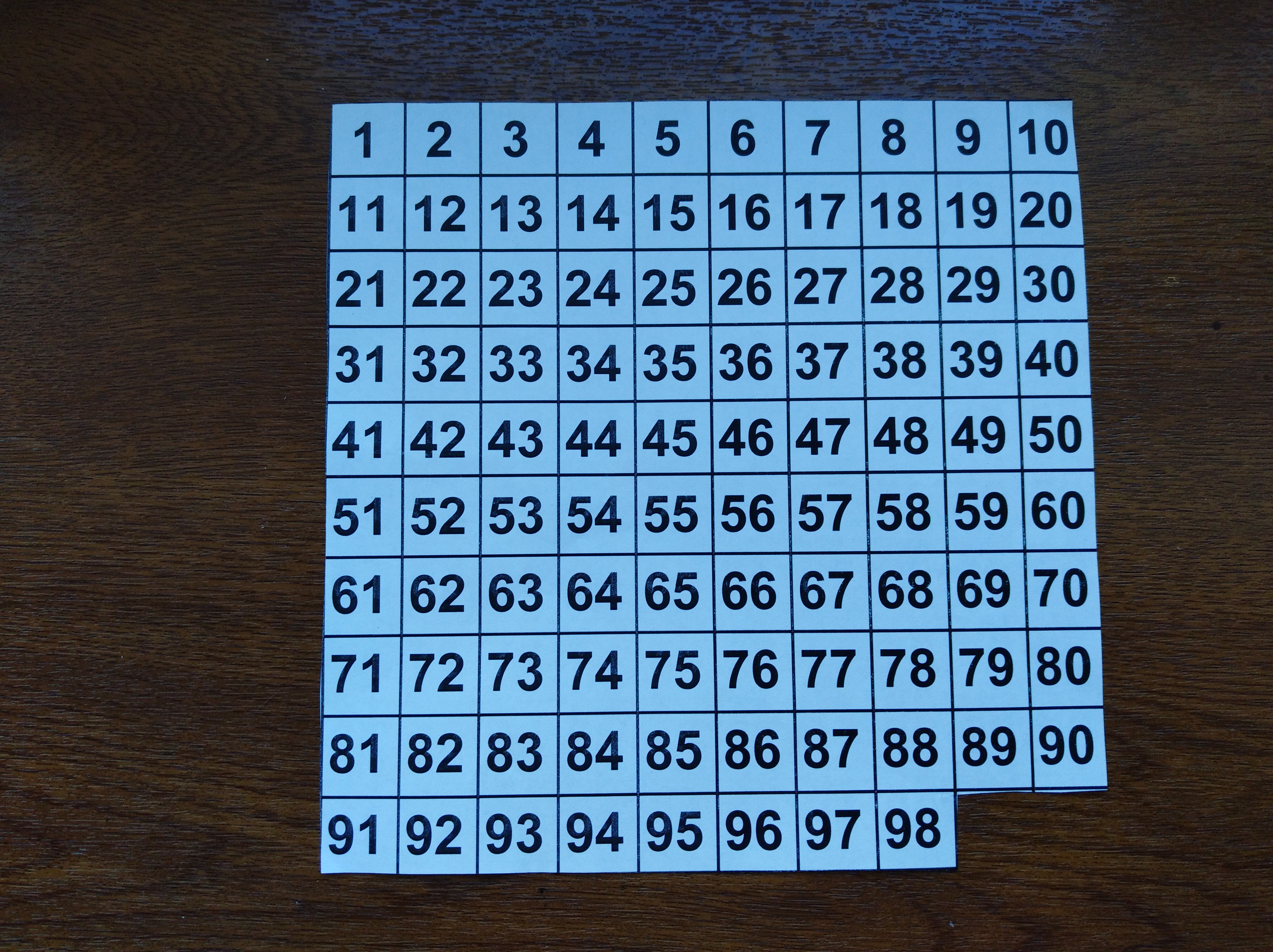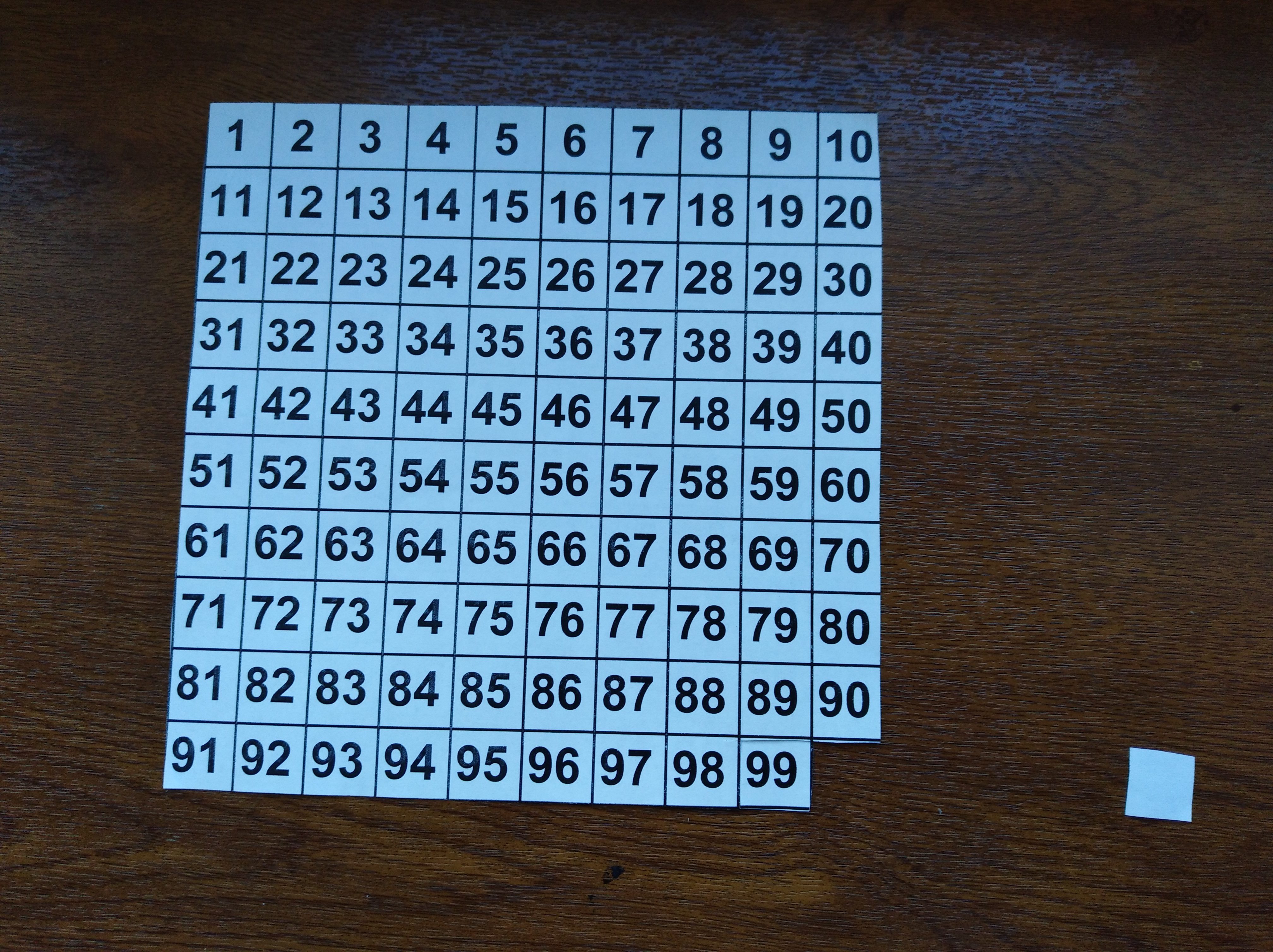 Дети с дислексией лучше усваивают смысл абстрактных понятий с помощью конкретных примеров и действий, которые они могут выполнить на практике. Вот пример из личного опыта, как получилось закрепить у ребенка  понятие “вычитание” :  ребенку предлагалось отрезать по 1 квадратику от квадрата – сотни с конца (one hundred square – эта модель часто используется в англоязычной литературе по математике).  Ученику предлагалось  каждый раз  произносить вслух математическое действие, которое он “совершает” в реальной жизни сейчас и  его результат. Затем ребенок должен был  записать это  на бумаге. Такая  “визуализация” помогла ученику прочно закрепить понятие “вычитание”.  То же самое можно повторить, отрезая по два квадратика (см. фото):